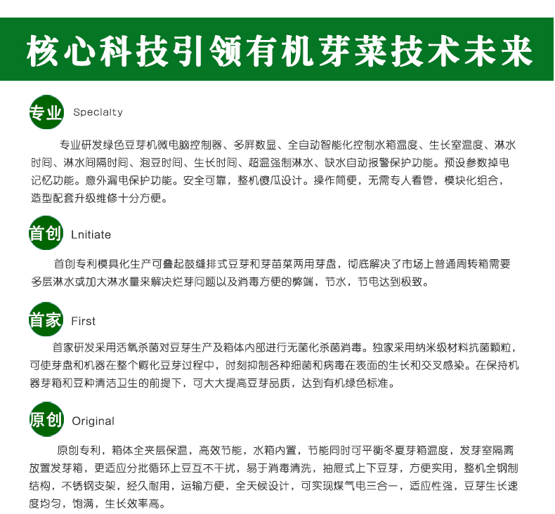 豆種清洗好之后,直接培育,員工操作過程簡約化;